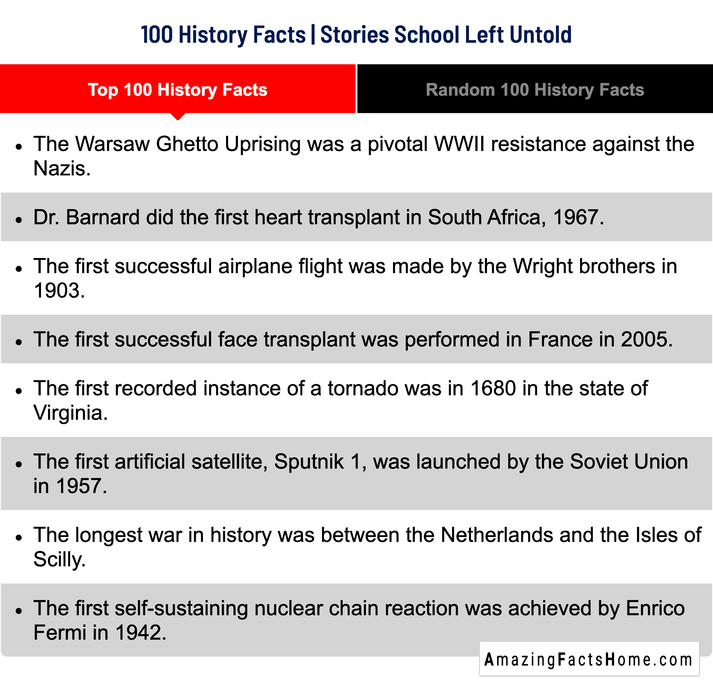 Top 100 History Facts